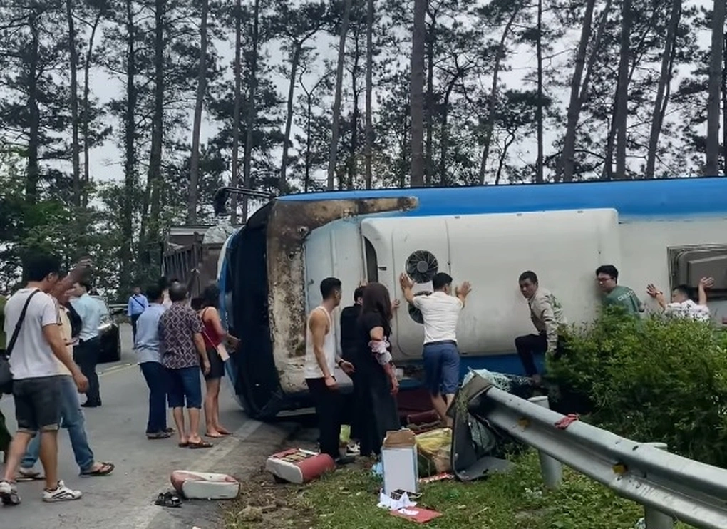 Xe khách đã mất lái do trơn trượt và lật nghiêng xuống vực sâu khoảng 5 mét. Nguyên nhân ban đầu được xác định là do mất phanh.